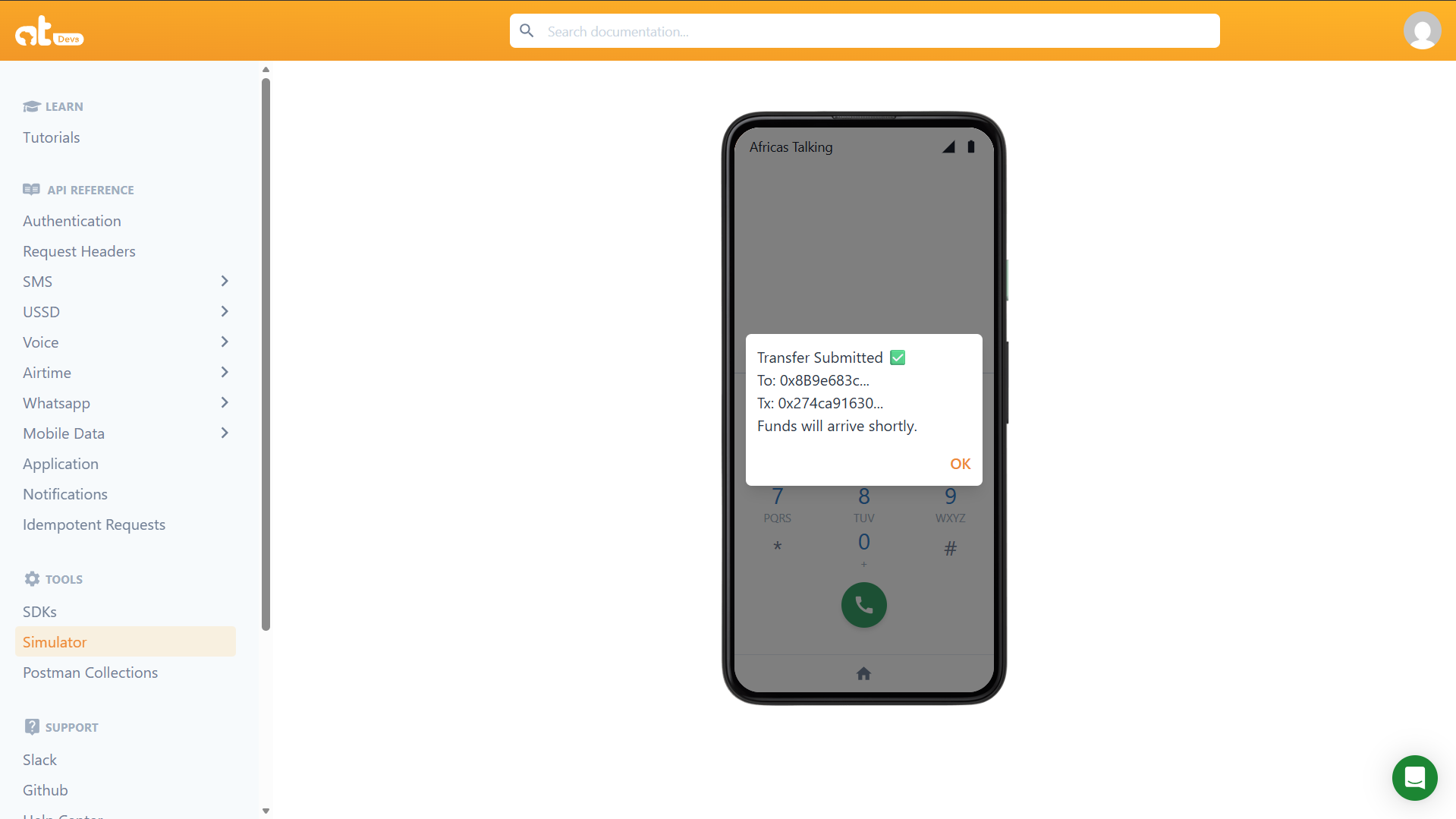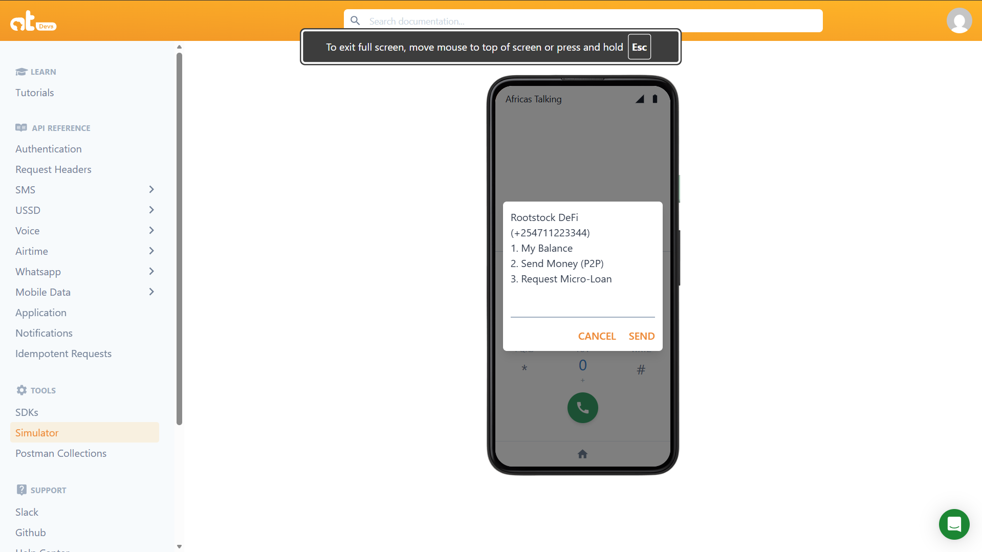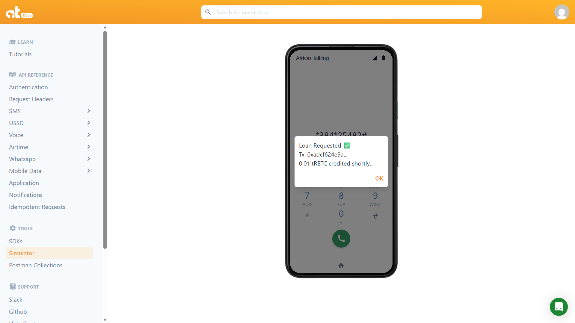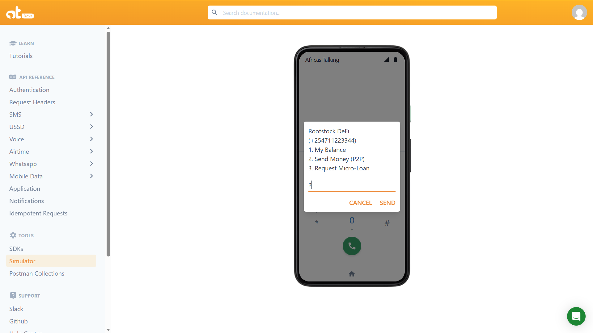 2. Navigate to USSD > Simulator.